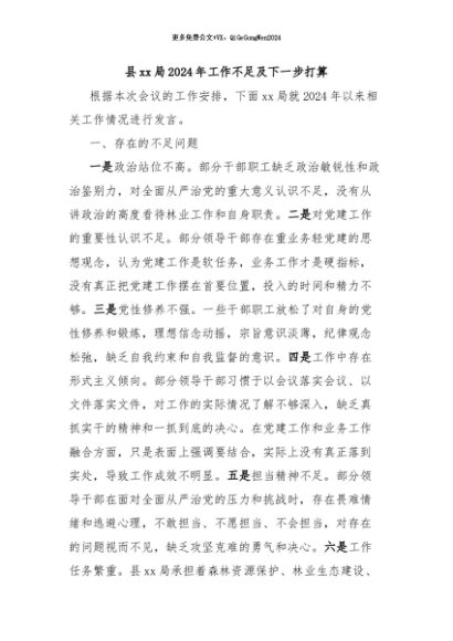 / 【七哥公文】2024年:县xx局2024年工作不足及下一步打算+更多免费公文+VX:QiGeGongWen2024