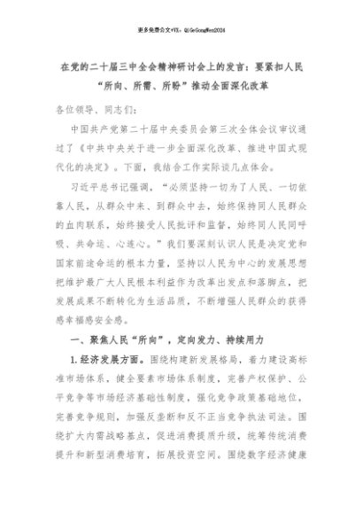 【七哥公文】2024年:在党的二十届三中全会精神研讨会上的发言:要紧扣人民“所向、所需、所盼”推动全面深化改革+更多免费公文+VX:QiGeGongWen2024