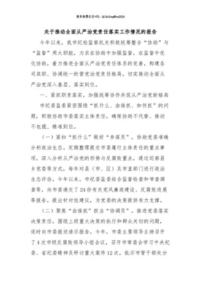 / 【七哥公文】2024年:关于推动全面从严治党责任落实工作情况的报告+更多免费公文+VX:QiGeGongWen2024
