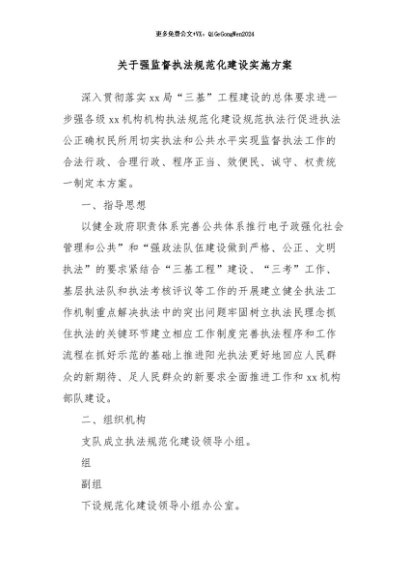 / 【七哥公文】2024年:关于强监督执法规范化建设实施方案+更多免费公文+VX:QiGeGongWen2024