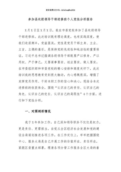 / 【七哥公文】2024年:参加县处级领导干部进修班个人党性分析报告+更多免费公文+VX:QiGeGongWen2024