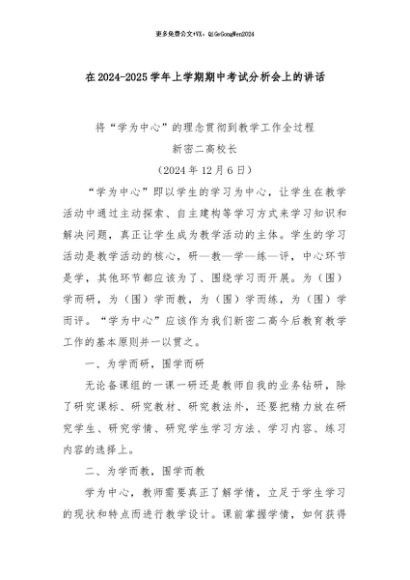 【七哥公文】2024年:在2024-2025学年上学期期中考试分析会上的讲话+更多免费公文+VX:QiGeGongWen2024