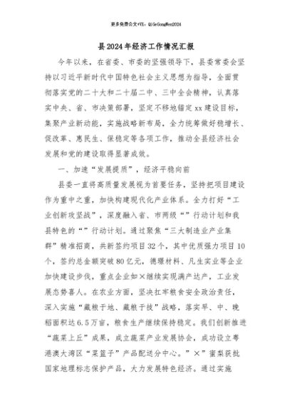 / 【七哥公文】2024年:县2024年经济工作情况汇报+更多免费公文+VX:QiGeGongWen2024