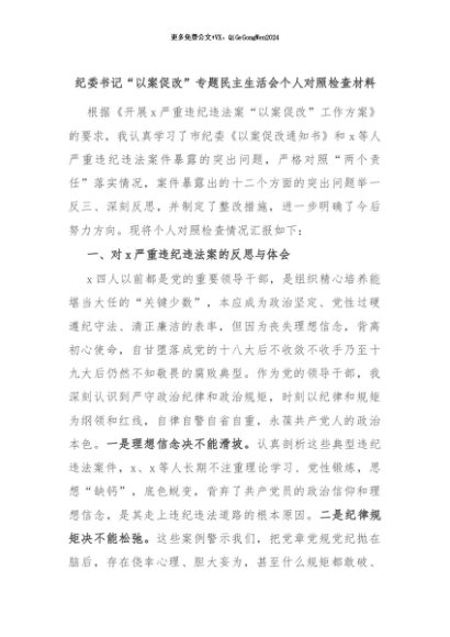 【七哥公文】2024年:纪委书记“以案促改”专题民主生活会个人对照检查材料+更多免费公文+VX:QiGeGongWen2024