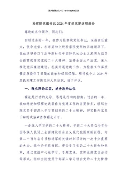 / 【七哥公文】2024年:检察院党组书记2024年度抓党建述职报告+更多免费公文+VX:QiGeGongWen2024