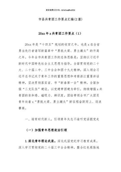 / 【七哥公文】2024年:(2篇)市县共青团工作要点汇编+更多免费公文+VX:QiGeGongWen2024
