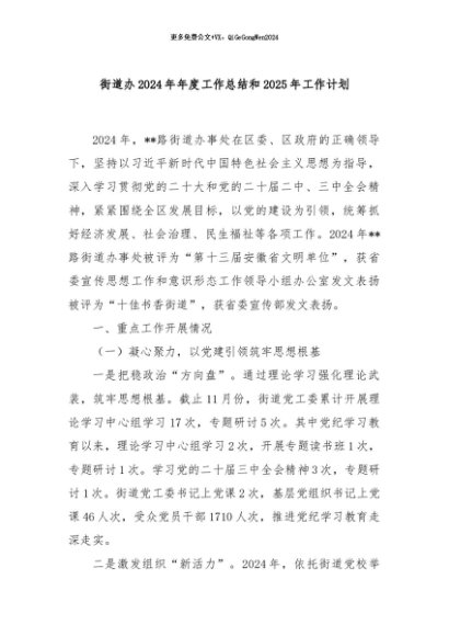 / 【七哥公文】2024年:街道办2024年年度工作总结和2025年工作计划+更多免费公文+VX:QiGeGongWen2024