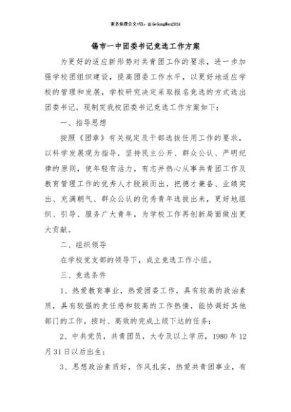 / 【七哥公文】2024年:锡市一中团委书记竞选工作方案+更多免费公文+VX:QiGeGongWen2024