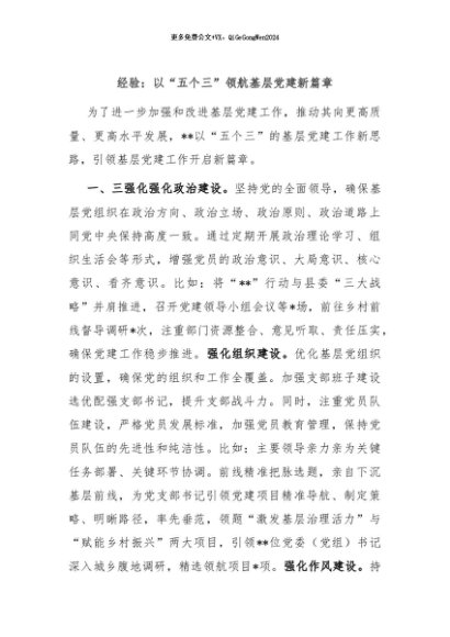/ 【七哥公文】2024年:经验:以“五个三”领航基层党建新篇章+更多免费公文+VX:QiGeGongWen2024