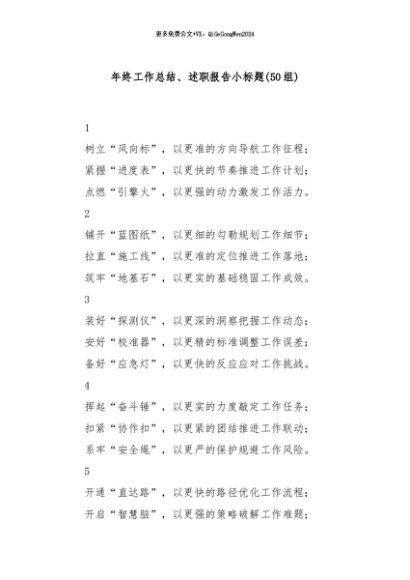 / 【七哥公文】2024年:(50组)年终工作总结、述职报告小标题+更多免费公文+VX:QiGeGongWen2024