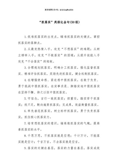 / 【七哥公文】2024年:(50组)“抓落实”类排比金句+更多免费公文+VX:QiGeGongWen2024