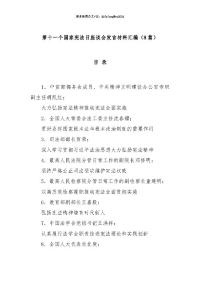 / 【七哥公文】2024年:(8篇)第十一个国家宪法日座谈会发言材料汇编+更多免费公文+VX:QiGeGongWen2024