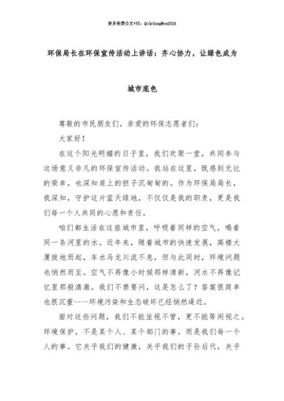 【七哥公文】2024年:环保局长在环保宣传活动上讲话:齐心协力,让绿色成为城市底色+更多免费公文+VX:QiGeGongWen2024