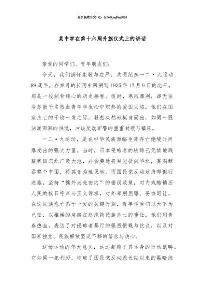 / 【七哥公文】2024年:某中学在第十六周升旗仪式上的讲话+更多免费公文+VX:QiGeGongWen2024
