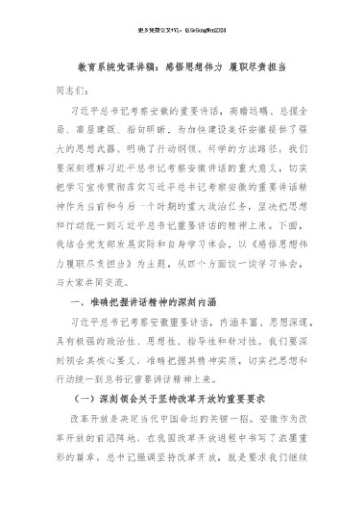 / 【七哥公文】2024年:教育系统党课讲稿:_感悟思想伟力 履职尽责担当+更多免费公文+VX:QiGeGongWen2024