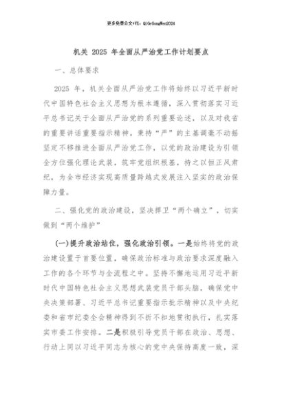 / 【七哥公文】2024年:机关 2025 年全面从严治党工作计划要点+更多免费公文+VX:QiGeGongWen2024