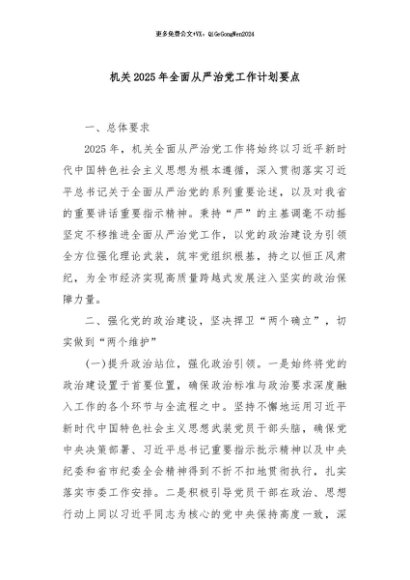 / 【七哥公文】2024年:机关2025年全面从严治党工作计划要点+更多免费公文+VX:QiGeGongWen2024
