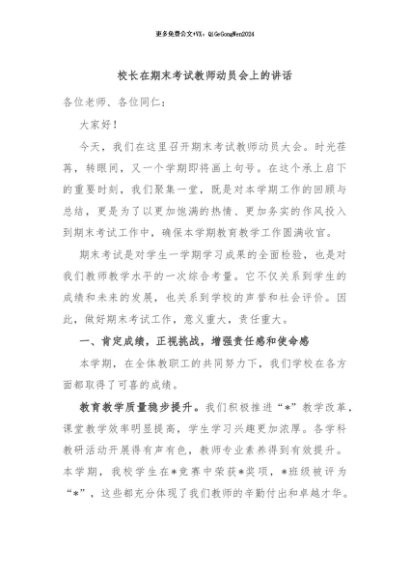 / 【七哥公文】2024年:校长在期末考试教师动员会上的讲话+更多免费公文+VX:QiGeGongWen2024