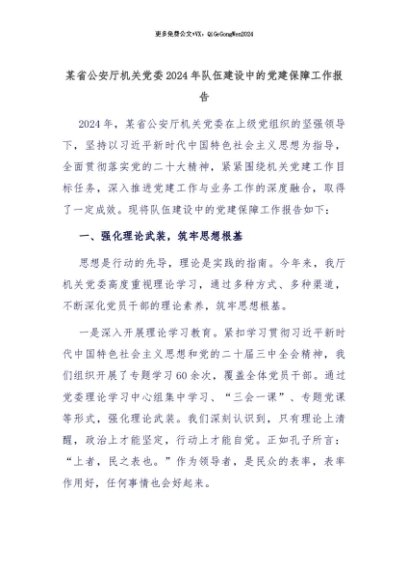 【七哥公文】2024年:某省公安厅机关党委2024年队伍建设中的党建保障工作报告+更多免费公文+VX:QiGeGongWen2024