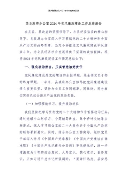 / 【七哥公文】2024年:某县政府办公室2024年党风廉政建设工作总结报告+更多免费公文+VX:QiGeGongWen2024