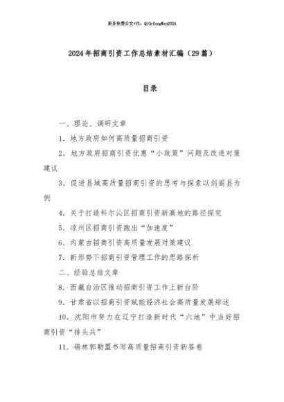 / 【七哥公文】2024年:(29篇)2024年招商引资工作总结素材汇编+更多免费公文+VX:QiGeGongWen2024
