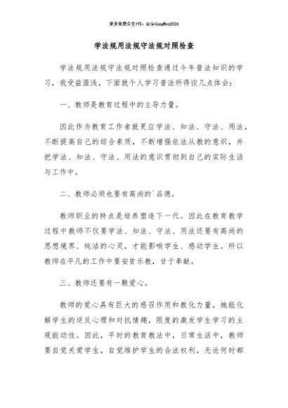 / 【七哥公文】2024年:学法规用法规守法规对照检查+更多免费公文+VX:QiGeGongWen2024