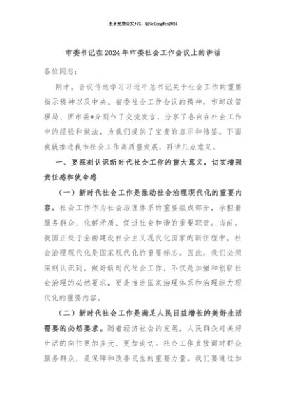 / 【七哥公文】2024年:市委书记在2024年市委社会工作会议上的讲话+更多免费公文+VX:QiGeGongWen2024