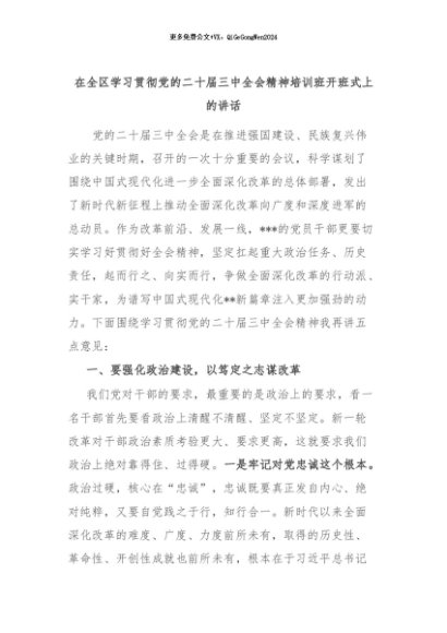 【七哥公文】2024年:在全区学习贯彻党的二十届三中全会精神培训班开班式上的讲话+更多免费公文+VX:QiGeGongWen2024