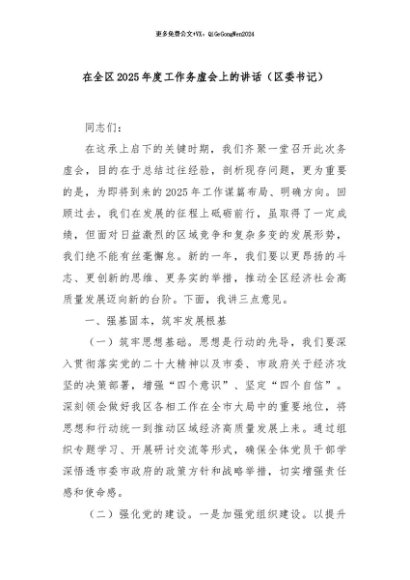 / 【七哥公文】2024年:在全区2025年度工作务虚会上的讲话(区委书记)+更多免费公文+VX:QiGeGongWen2024
