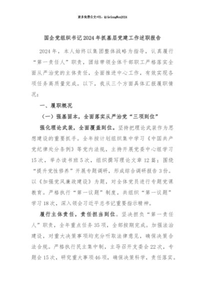 / 【七哥公文】2024年:国企党组织书记2024年抓基层党建工作述职报告+更多免费公文+VX:QiGeGongWen2024