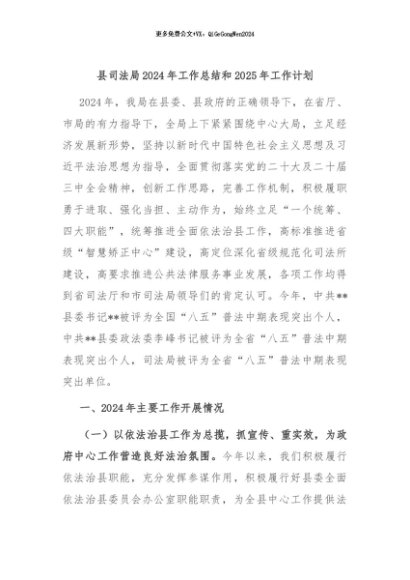 / 【七哥公文】2024年:县司法局2024年工作总结和2025年工作计划+更多免费公文+VX:QiGeGongWen2024