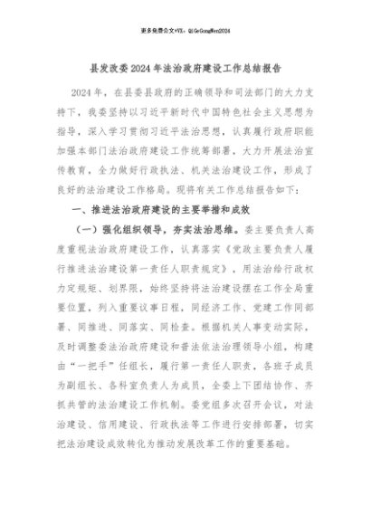 / 【七哥公文】2024年:县发改委2024年法治政府建设工作总结报告+更多免费公文+VX:QiGeGongWen2024
