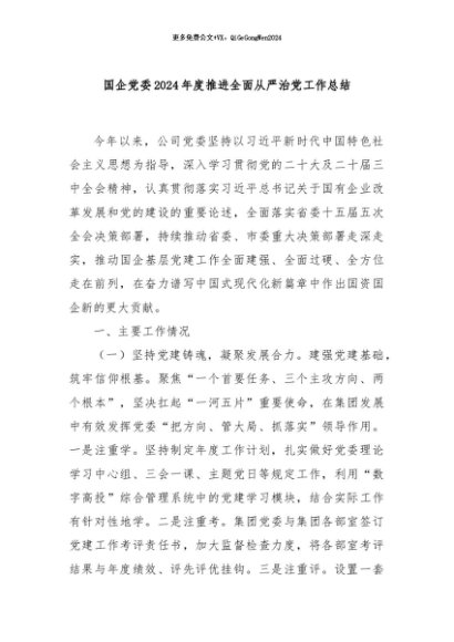/ 【七哥公文】2024年:国企党委2024年度推进全面从严治党工作总结+更多免费公文+VX:QiGeGongWen2024