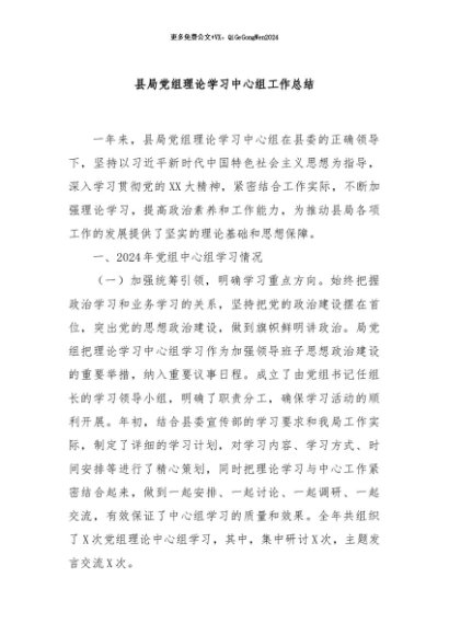 / 【七哥公文】2024年:县局党组理论学习中心组工作总结+更多免费公文+VX:QiGeGongWen2024