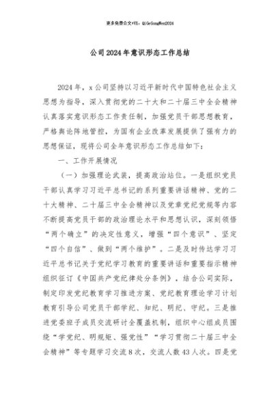 / 【七哥公文】2024年:公司2024年意识形态工作总结+更多免费公文+VX:QiGeGongWen2024