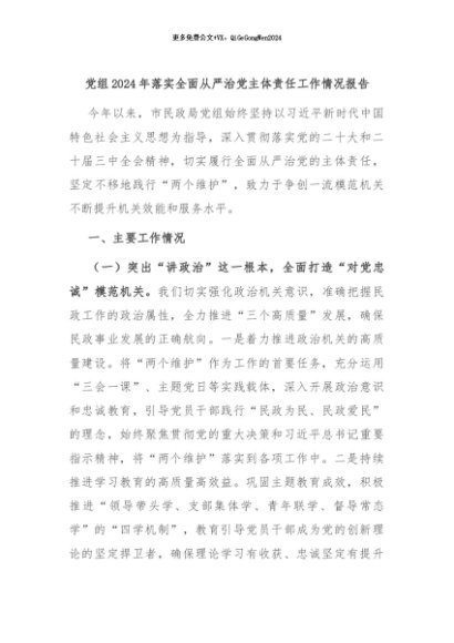 【七哥公文】2024年:党组2024年落实全面从严治党主体责任工作情况报告+更多免费公文+VX:QiGeGongWen2024