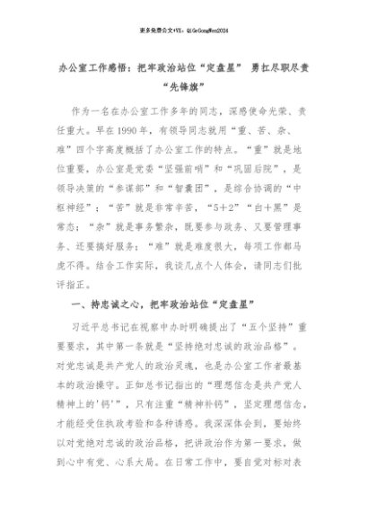 【七哥公文】2024年:办公室工作感悟:把牢政治站位“定盘星” 勇扛尽职尽责“先锋旗”+更多免费公文+VX:QiGeGongWen2024