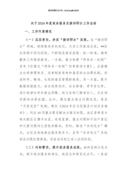 / 【七哥公文】2024年:关于2024年度政务服务及接诉即办工作总结+更多免费公文+VX:QiGeGongWen2024