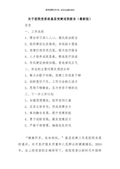 / 【七哥公文】2024年:关于医院党委抓基层党建述职报告(最新版)+更多免费公文+VX:QiGeGongWen2024