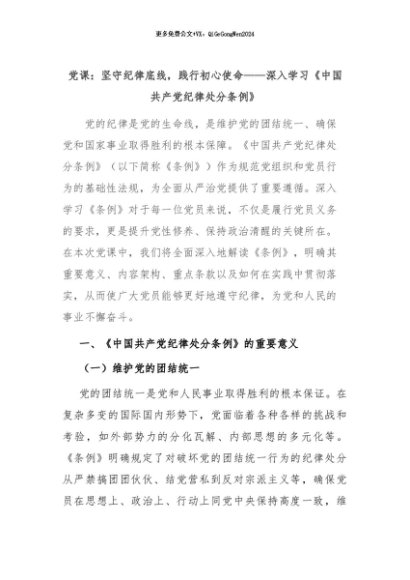【七哥公文】2024年:党课:坚守纪律底线,践行初心使命——深入学习《中国共产党纪律处分条例》+更多免费公文+VX:QiGeGongWen2024