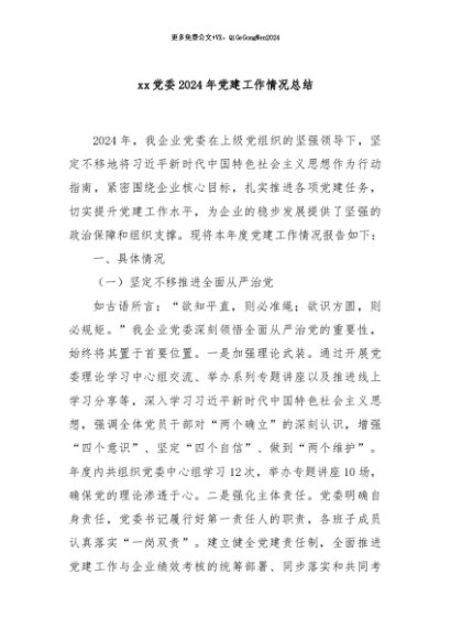 / 【七哥公文】2024年:xx党委2024年党建工作情况总结+更多免费公文+VX:QiGeGongWen2024