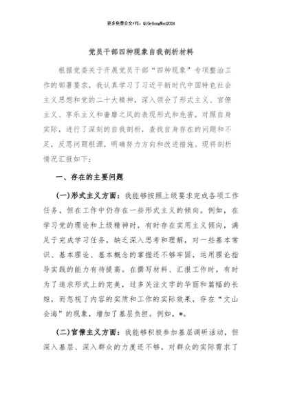 【七哥公文】2024年:党员干部四种现象自我剖析材料+更多免费公文+VX:QiGeGongWen2024