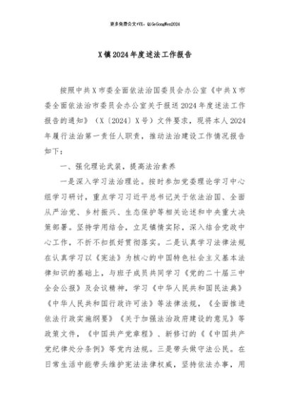 / 【七哥公文】2024年:X镇2024年度述法工作报告+更多免费公文+VX:QiGeGongWen2024