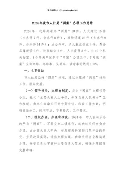 / 【七哥公文】2024年:2024年度市人社局“两案”办理工作总结+更多免费公文+VX:QiGeGongWen2024