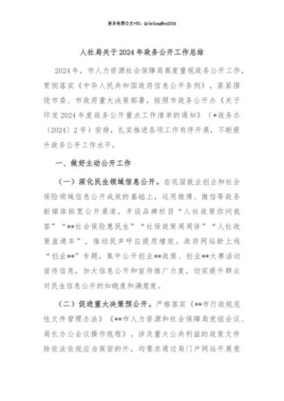 / 【七哥公文】2024年:人社局关于2024年政务公开工作总结+更多免费公文+VX:QiGeGongWen2024