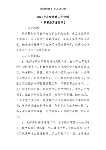 / 【七哥公文】2024年:2024年小学资助工作计划+更多免费公文+VX:QiGeGongWen2024
