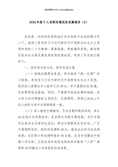 / 【七哥公文】2024年:2024年度个人述职述德述法述廉报告(2)+更多免费公文+VX:QiGeGongWen2024