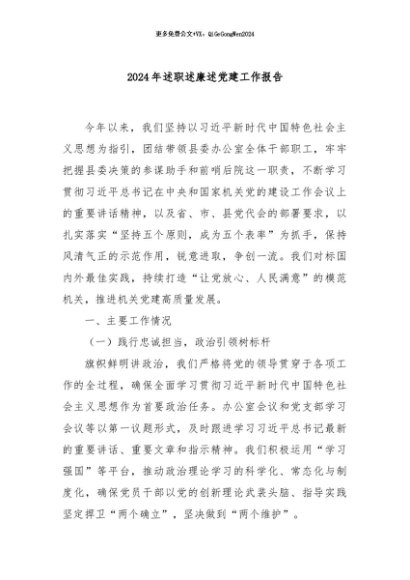 / 【七哥公文】2024年:2024年述职述廉述党建工作报告+更多免费公文+VX:QiGeGongWen2024