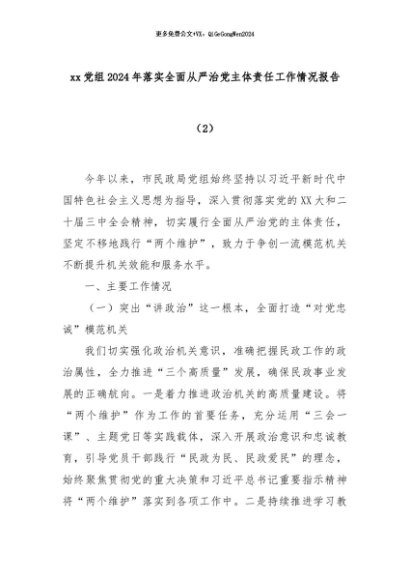 【七哥公文】2024年:xx党组2024年落实全面从严治党主体责任工作情况报告(2)+更多免费公文+VX:QiGeGongWen2024