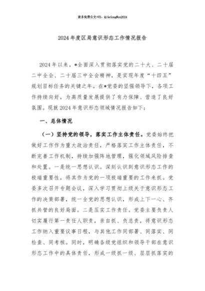 / 【七哥公文】2024年:2024年度区局意识形态工作情况报告+更多免费公文+VX:QiGeGongWen2024